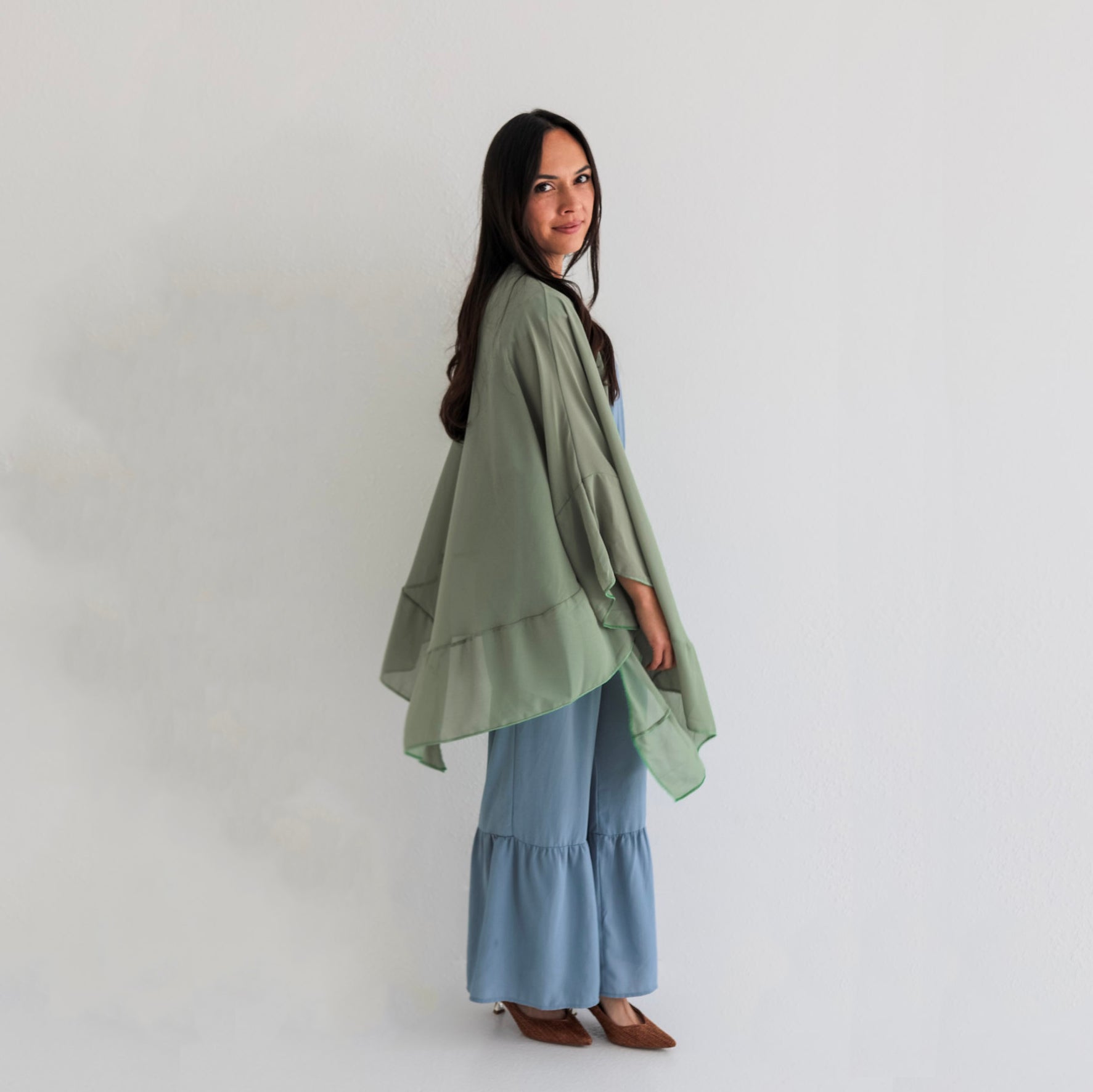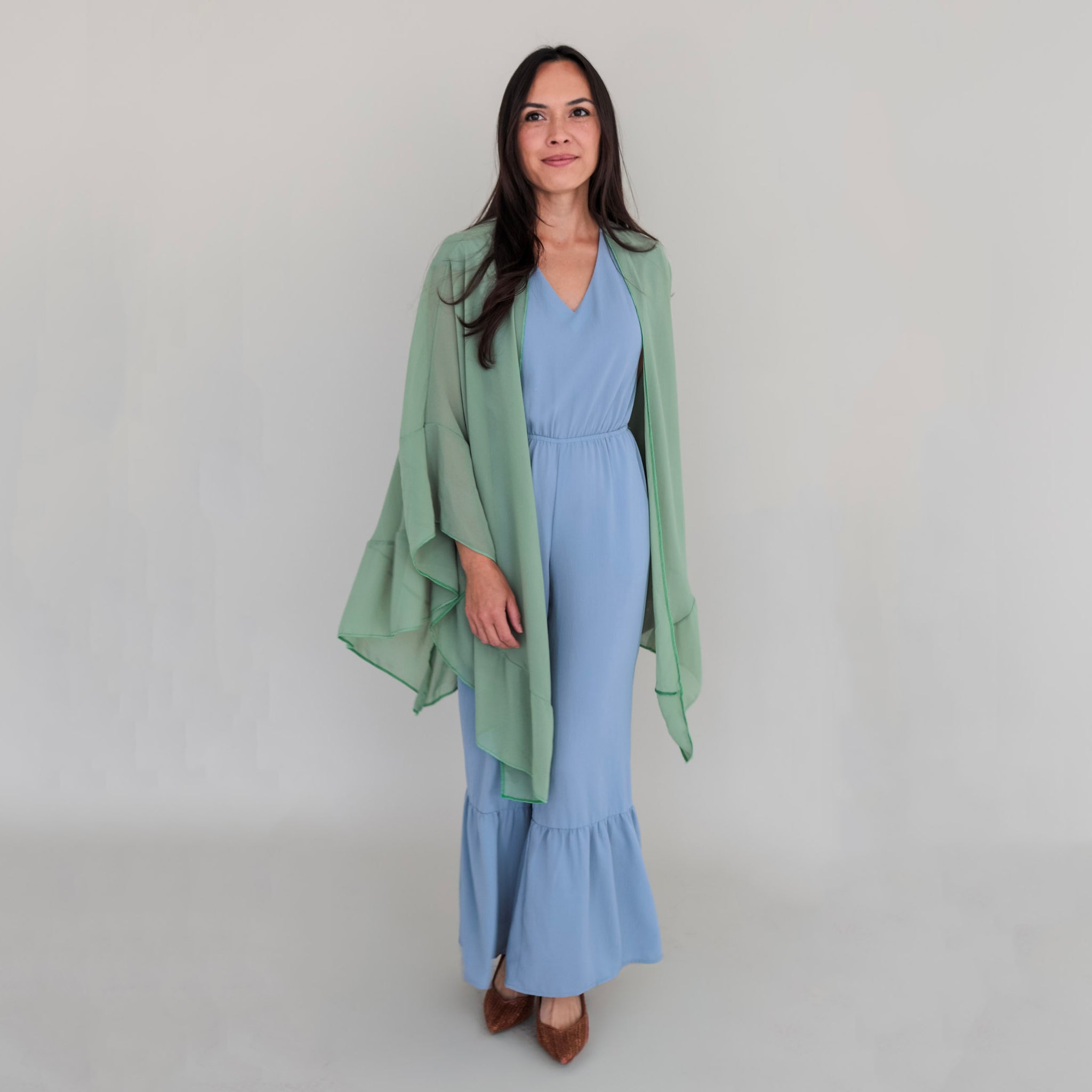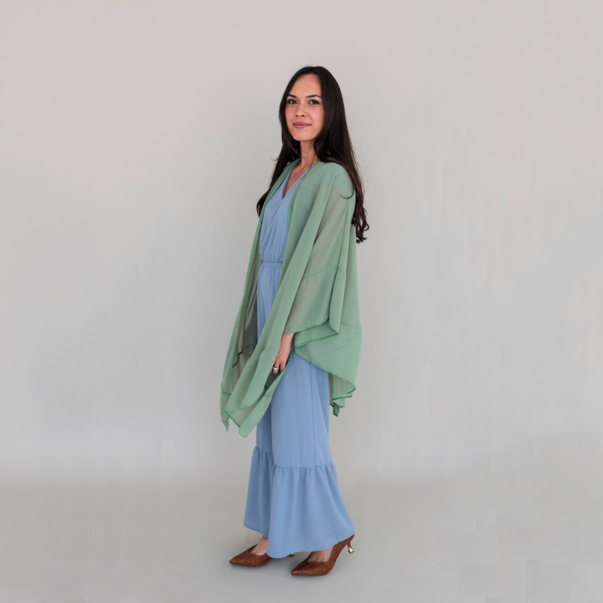The Dignified Kimono is understated elegance in motion. This graceful chiffon kimono adds polished charm to your everyday wardrobe. With its flowing silhouette and rich green hue, the Dignified Kimono reflects the inner strength and dignity of the women behind the design. Designed to flatter every body type, this is the piece you’ll reach for to elevate everything from jeans to dresses. Easy to wear and effortlessly graceful, the Dignified Kimono is a wardrobe staple made with heart.